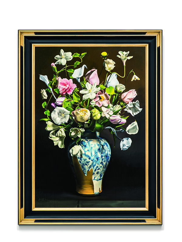 지하에서 작가가 꽃을 미술사적 맥락과 연결 지었다면 1층에서는 좀 더 개인적인 욕망에 초점을 둔 것으로 보인다. 2층에서는 미술사를 교두보로 사회 비판의 제스처를 보여주고자 했다. 이런 전략들은 일부분 표면적이지만 대부분 우회적이다. 따라서 이 전시에서 꽃 자체가 가지는 클리셰가 많은 부분 극복될 수 있다는 점은 분명한 장점이다. 앞에서 말했듯 관객의 시선이 필요한 부분은 색, 배치된 모습, 꽃병의 형상, 액자와 같은 ‘틀’이지 꽃 자체가 아니다. 따라서 이 전시의 작품들은 작가 자신의 작업과 더불어 대상인 꽃을 층별로 다르게 ‘꽃꽂이’했다고 볼 수 있다. 2층에서 사용된 전략이 다소 찝찝한 상태로 끝남에도 불구하고 이 전시는 강력한 기표인 꽃을 다른 상황 속에서 재배치해낸다는 분명히 큰 장점이 있다. 회화에서 대상은 박제되기 마련이기에 자신이 가지는 속성이 고정된다는 약점이자 강점을 가진다. 그러나 작가는 이를 하나의 약점으로 여기고 벗어나기 위해 외부의 프레임을 뒤흔드는 전략을 취한다. 작가가 고수하는 ‘익숙한 대상을 낯설게 보게 하는’ 시도들은 예술에서 가장 중요한 주제다. 그리고 이러한 시도는 거대한 세계 속 부조리함과 어긋남을 지적하는 것이기도 하지만 아주 작은 부분에서 균열을 일으키는 시도가 될 수 있다. 이 전시는 큰 틀에서 이러한 전략을 일부분 성공적으로 취해냄으로써 관객에게 진부성, 클리셰를 비롯한 편견들에 대해 숙고하게 한다.