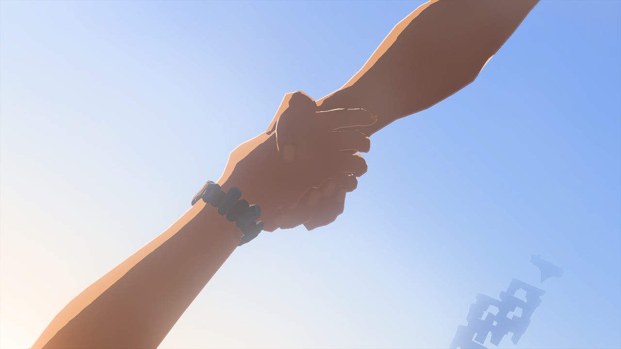 상승과 하강과 마찬가지로 '손' 그리고 그것으로 하는 모든 행위가 스토리 전체에서 아주 큰 의미를 가진다. 실제로 제작진의 인터뷰에서 게임이 공개되기 전에 이미 '손'이 가지는 의미를 핵심적으로 설명하고 있다. 스토리 전체에서 손이 강조되는 장면은 반복되는데 처음에 링크가 젤다의 손을 놓치는 것으로 시작된다. 그리고 스토리에서 큰 분기를 지날 때, 정확히 말해 곡옥이 위치한 신전의 기생마물을 제거함으로써 같이 동행한 인물들이 현자로 각성할 때 그들 각각은 링크에게 힘을 전달한다. 그리고 이 순간에 악수 혹은 주먹 인사를 비롯해 '손과 손'이 연결되는 장면이 어쩌면 우스꽝스러울 정도로 강조되서 보여진다. 이 과정을 거듭함으로써 링크는 놓쳤던 손을 최종적으로 붙잡을 준비를 한다고 볼 수 있다. 그리고 이 손의 맞잡음이 최대의 감동을 주는 지점은 바로 가논을 물리치고 젤다가 백룡에서 다시 인간으로 돌아왔을 때다. 여기서 링크는 추락하는 자신과 젤다 사이를 빠르게 간격을 좁혀서 그녀의 손을 붙잡는다. 놓친 손은 다른 이들의 연결들로 최종적으로 다시 맞잡을 수 있는 것이 되었다. 제작진들 스스로도 인터뷰에서 링크라는 주인공의 이름 자체가 사실 '연결'이라는 의미를 가진다는 의미심장한 사실을 재차 깨닫는다. 링크의 모험과정의 연결들은 플레이어가 주어진 세계에 더 깊게 말 그대로 연결될 수 있는 지점을 쌓아올린다.